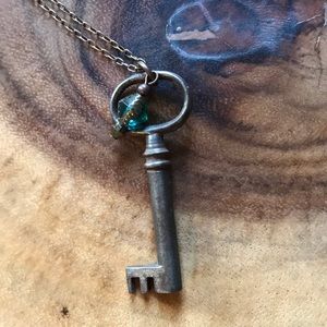 Authentic skeleton key necklace! Brass chain and small accent beads! Gorgeous!