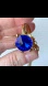 How about this novelty keychain, an oversized fashion ring that can hold your keys? The faux-sapphire goldtone metal ring is approx. 2 inches long. It has 7 gold spring rings attached. I added my key to a few of these photos for a size reference. The colors are gold with a faceted acrylic blue inset. The finish shows some light wear from age and previous use.