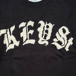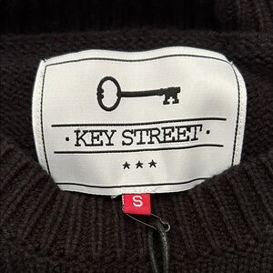 Key Street Black Crewneck Sweater with Bold Lettering, Size Small, NWT