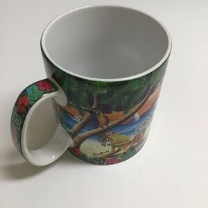 New with tag. Really nice, large 18 oz ceramic coffee mug or tea cup. Very Colorful wrap around graphic—even on the handle.