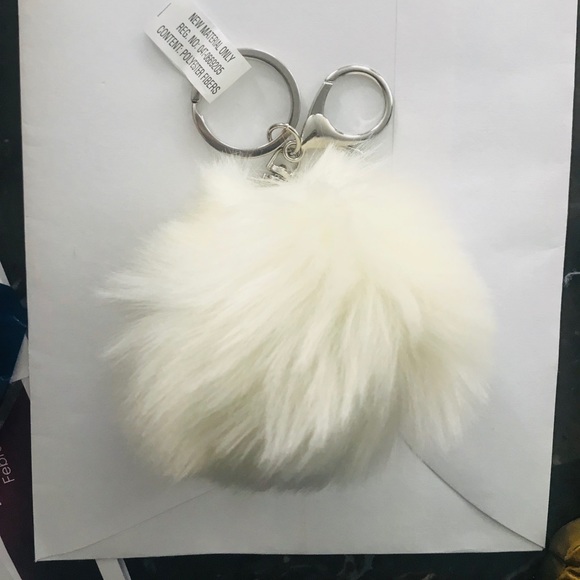 White pom pom key chain