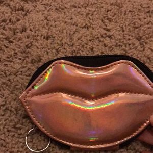NYX makeup key chain coin pouch. Iridescent rose gold color in the shape of lips. No flaws never used