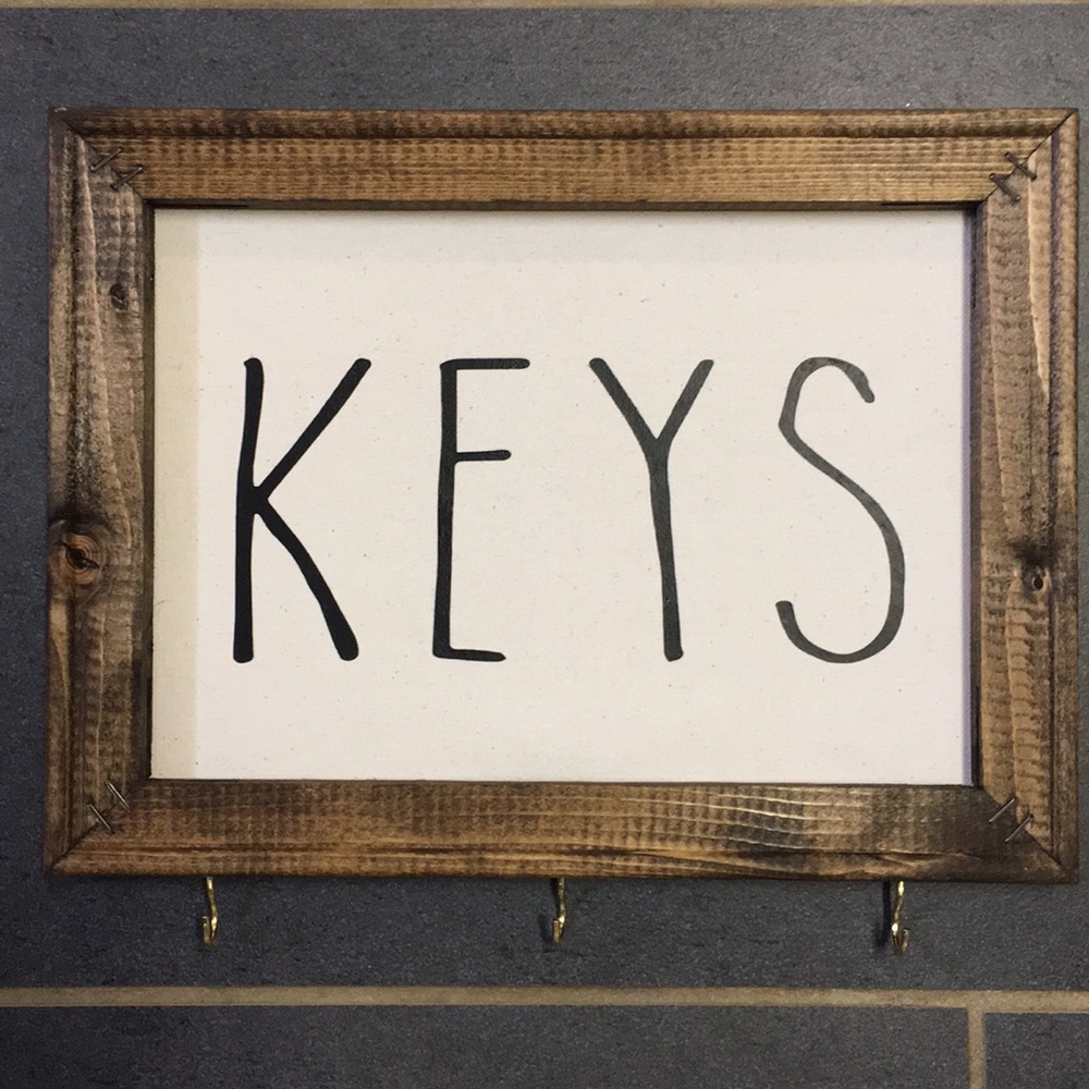 9x12 wooden framed canvas key holder with 3 hooks. Made by me!