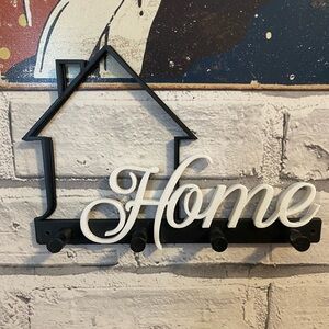 This is made from a 3d printer I had to glue the home sign on it and it has two holes on it so u can use screw to hold it still on the wall
