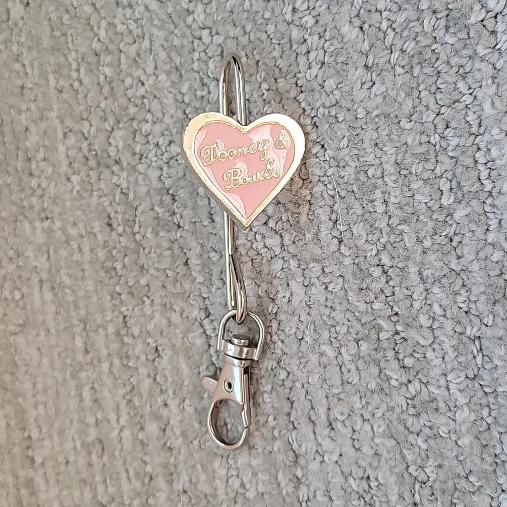 In good condition. This little keychain hook will help you find you keys. Just clip it to your keys and hook onto the edge of your purse.