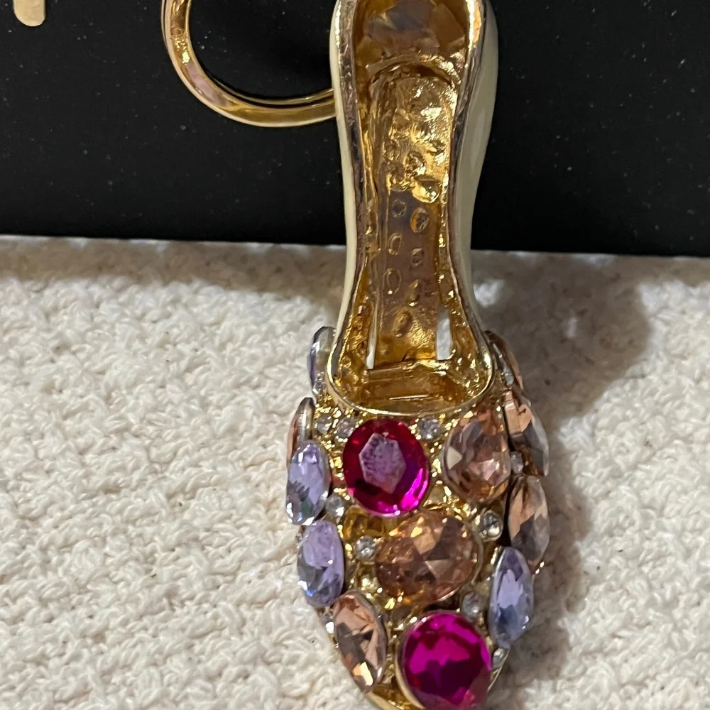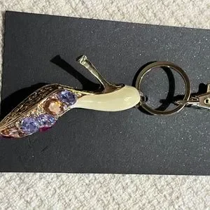 Vintage very beautiful stiletto crystal accents gold key ring
