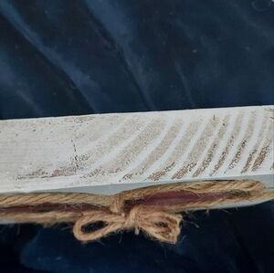 Display this handcrafted, Key To My Heart, wooden white washed accent piece on a nightstand or mantel. White washed wood, jute rope, acrylic paint, brass key. Measures 11.5x8x1.5. Heavy duty.