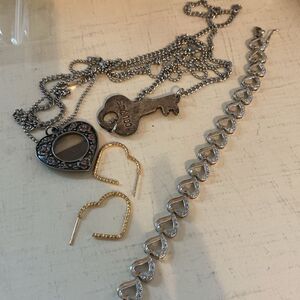Key to your heart jewelry lot - 2 necklaces, 1 bracelet, pierced earrings.