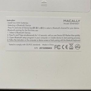 Macally wireless keyboard, Model BTMINIKEY, mac compatible, takes 2 AA batteries