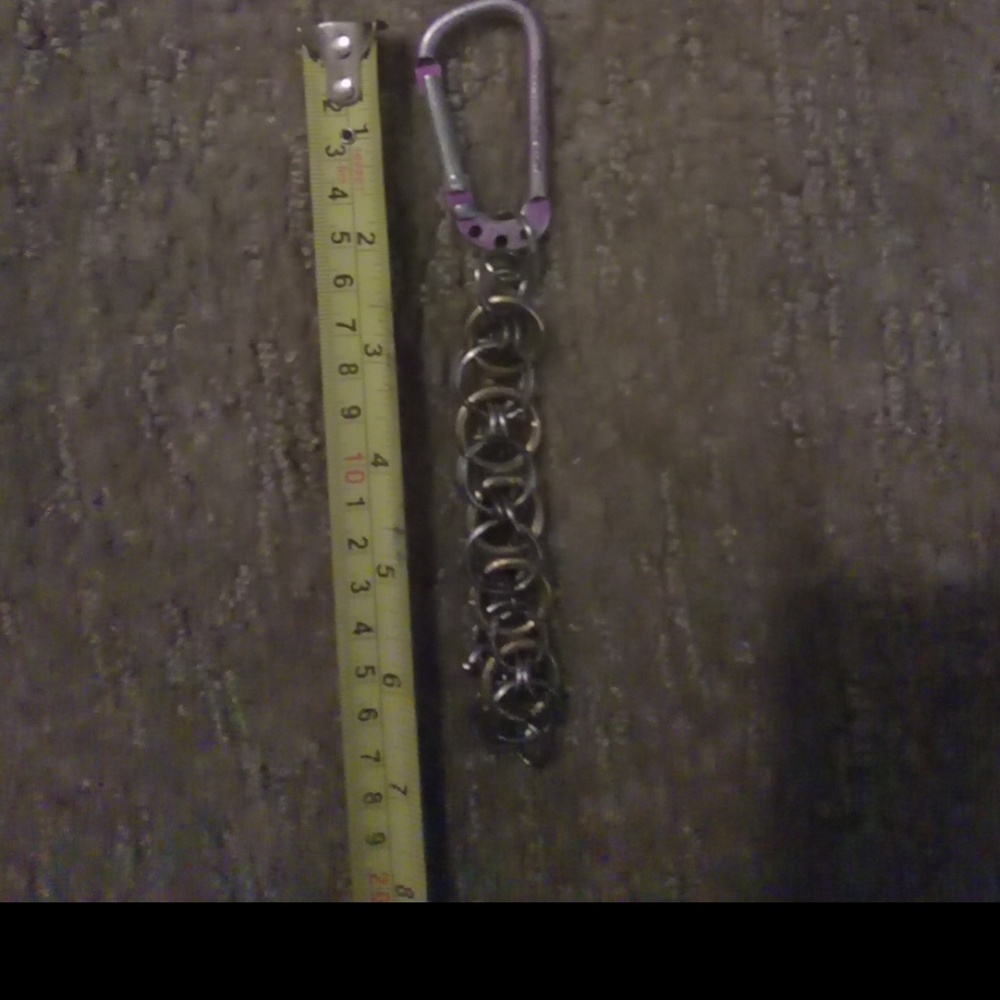 This is a helmsweave chainmaille weave keychain.its made from brass and stainless steel rings.two different sizes.chain is 4" and clasp is 2".