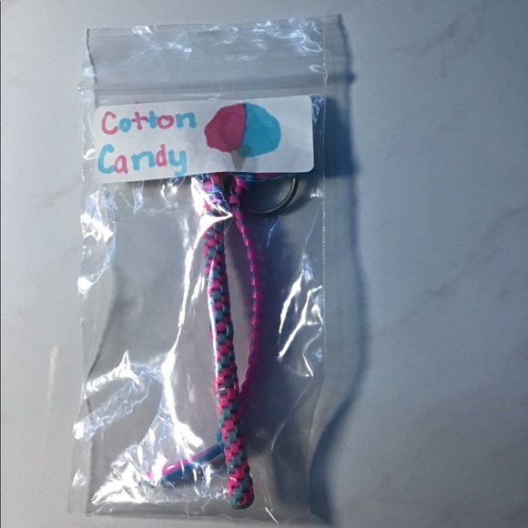 This keychain comes with a hook ring for you to put on your keys! Made from plastic lacing.