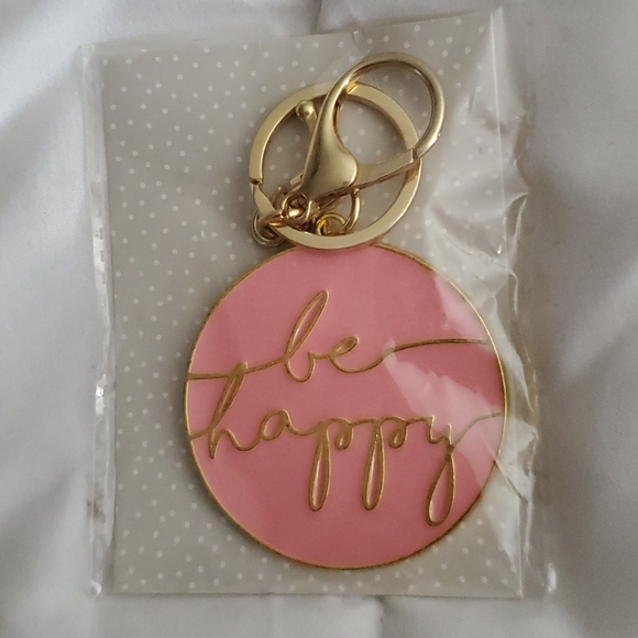 Be Happy Keychain. Never opened. Pink and gold