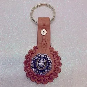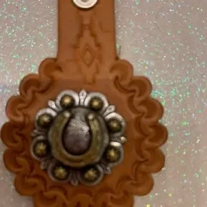Genuine leather keychain with a good luck Cabochon