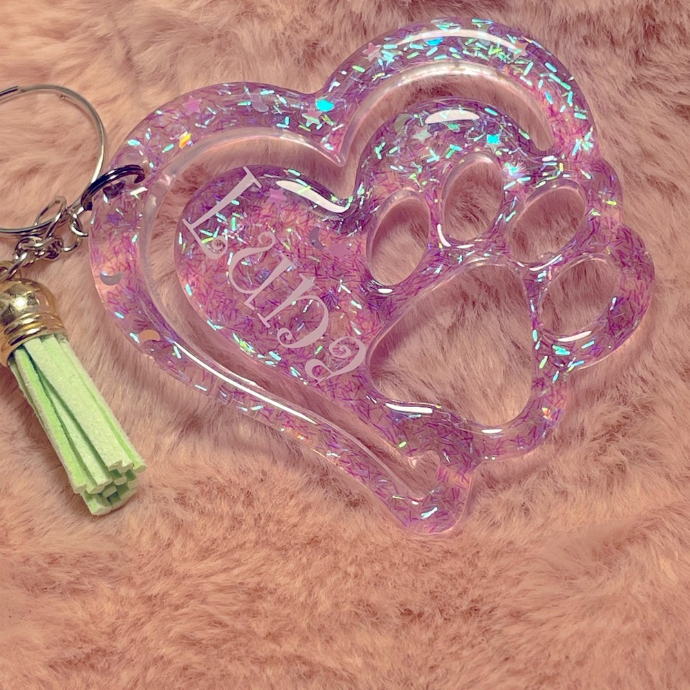 Custom made resin pet keychains! Offer a variety of colors and customizable details…pics provided are examples of orders I have previously done.