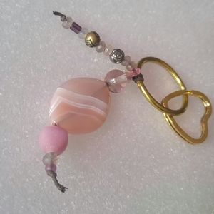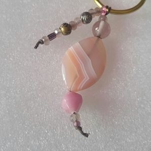 Keychain, pink smoke...beaded keychain, 3.5"