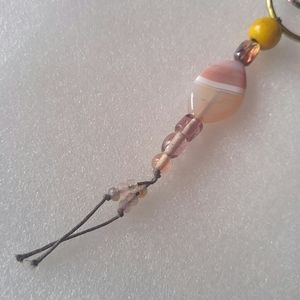 Keychain, Sandy shores...glass/wood beaded keychain on cord 🔑