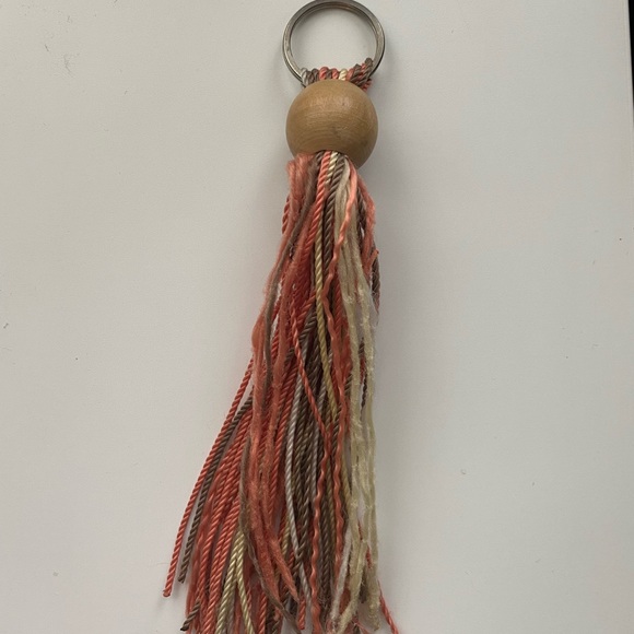 orange, brown, and white keychain