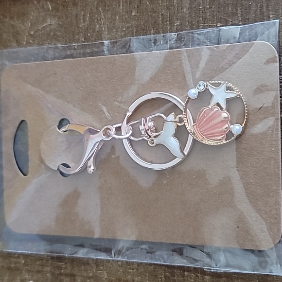 Lobster claw rose gold keychain with whale tail and seashell charms. Great stocking stuffer/teacher gifts. Buy 1 keychain, get 2nd 50% off.