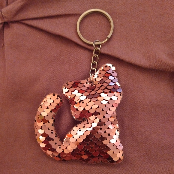 Pink sequin cat keychain