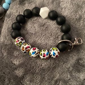 Silicone keychain black and colorful cheetah print