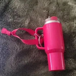 Plastic gold tone with silver logo,Mini quencher,keychain, ornament, holiday charm, bag charm, Tumbler charm,key ring, makes a very cute gift.
