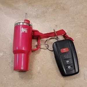 Plastic gold tone with silver logo,Mini quencher,keychain, ornament, holiday charm, bag charm, Tumbler charm,key ring, makes a very cute gift.