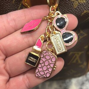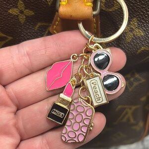 playful keychain with pink and gold accents.