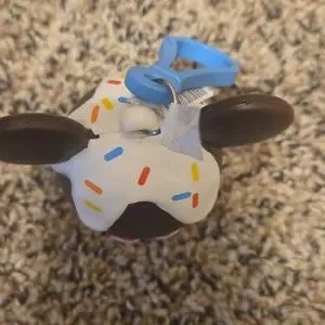 Cute Mickey Mouse cupcake keychain with a red base and brown ears. Perfect for Disney fans.