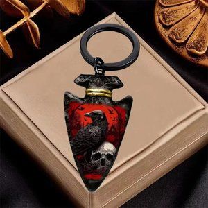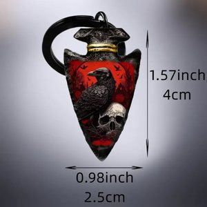 Keychain Black Raven & Skull Viking indian arrowhead Gothic Wiccan emo vamp Punk