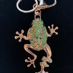 Multi color Austrian crystal enameled frog keychain in goldtone.