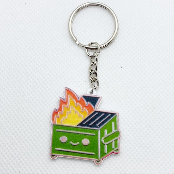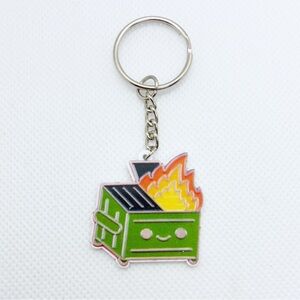Keychain Purse Bag Charm Dumpster Fire Everything Is Fine Funny Sarcastic Punk