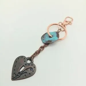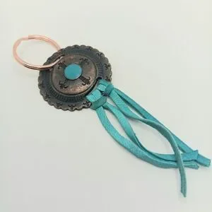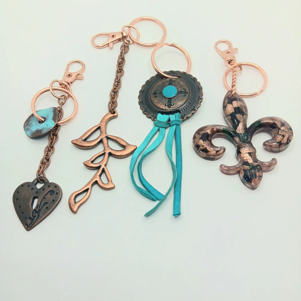 Elegant copper keychains with turquoise accents. Perfect for adding a touch of style to your accessories.