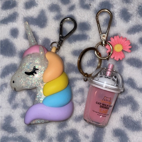 Bath and Body Works Unicorn hand sanitizer key chain & cat bubble tea key chain bundle. Like new condition.