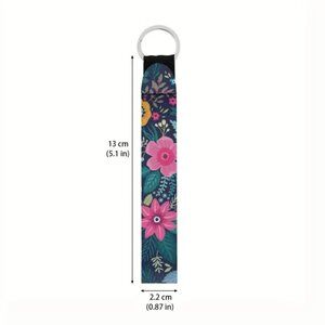Keychain Wristlet Floral Pattern Polyester Key Fob Strap,