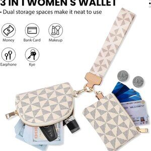 Keychain Wristlet Wallets for Women Leather Coin Purse Dual Pouch Wristlet Credi