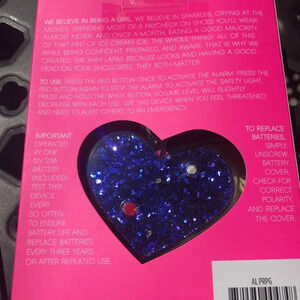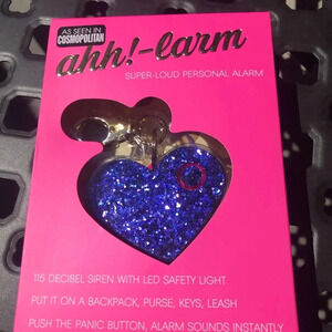 Heart shaped glitter keychain with safety alarm.