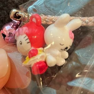 Hello Kitty and Japanese girl keychain bundle. (1) HK dressed in uniform with little bunny friend on back (2) HK hiding in book (3) cute Japanese girl in kimono (4) HK lanyard