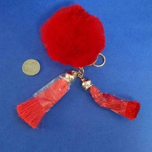 Keychain pompom, 2 tassels, red