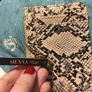 Sienna Mae. Lennon Vegan Leather Card Snakeskin on Gold Wallet keyring - NWT. Sienna Mae Lennon Vegan Leather Card Wallet. Has a key ring link inside. 2 credit card slots. New with tags! Retail price $48