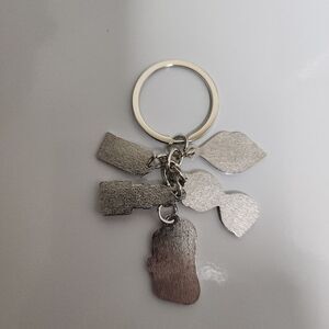 Silver tone Keychain with pink accent Lipstick, Sunglasses and Bag Charms