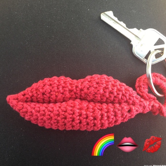 Red Handmade Crochet Lip Keychains