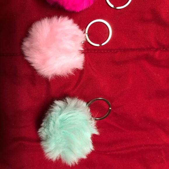 One Pom Pom keychain and One Leather Tassel Keychain