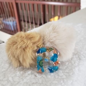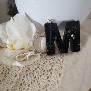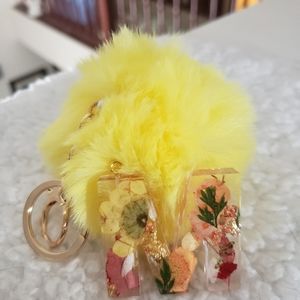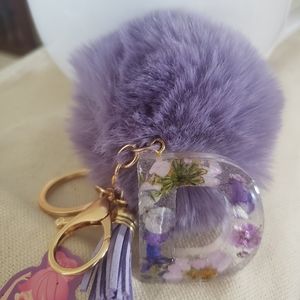 Handmade keychains made with resin, pressed natural flowers, flakes, pom pom (no pom for boys) silver and gold color available. From A -Z , can make any color