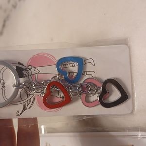 new never opened gold and blue cc perfume bottle Keychain, and clored hearts Keychain