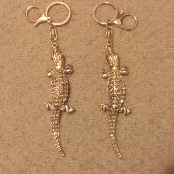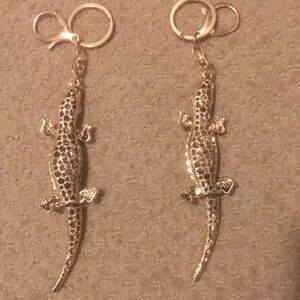 Alligator keychains set of 2, red stone eyes, clip, never used, good condition