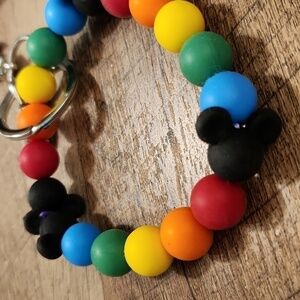 Keychains Metal and Silicone. Never used. Nice metal red and multi color silicone beads with tassel.