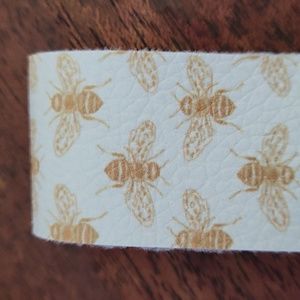Handcrafted soft faux leather keyfob wristlet. These offer a myriad of usage from keeping your keys handy to attaching to luggage for easy identification. Honey bees and flowers decorate these must-have items. Great gift idea, too. Approximately 6" long by 1" wide.
