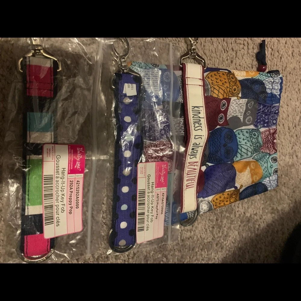 Lot of 3 Thirty-One keyfobs and mini owl dust bag