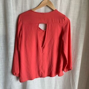 Vintage Charlotte Russe Coral Blouse Keyhole Back Made in USA L