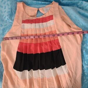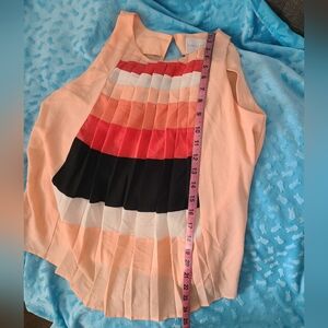 Super cute, flowy, sleeveless blouse with keyhole back opening and single button closure.